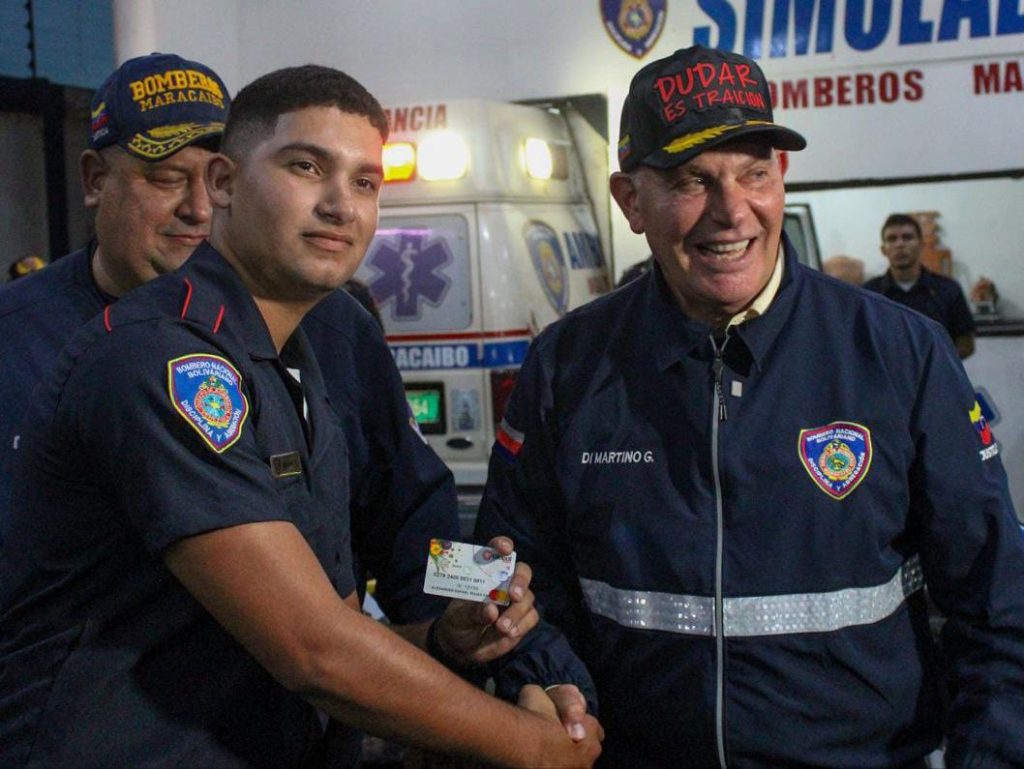 (Ciclo Informativo). El alcalde bolivariano de Maracaibo, Giancarlo Di Martino, entregó 313 tarjetas de multibeneficio social al personal del Instituto Autónomo Cuerpo de Bomberos de Maracaibo, como bonificación especial destinada a dignificar la labor de estos funcionarios.