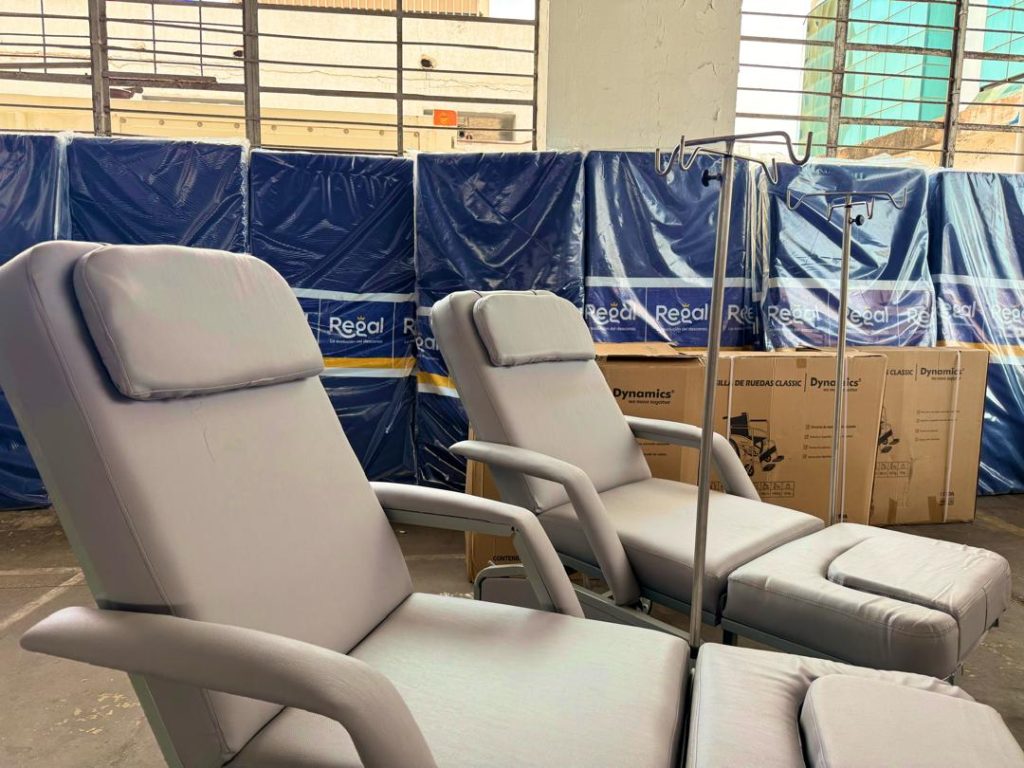 El Gobernador Caldera detalló los alcances de la dotación: “Estamos entregando 300 colchones para el Hospital Universitario de Maracaibo y 32 sillas tipo poltrona para la unidad de diálisis de Cabimas y de la Villa del Rosario. También entregamos tensiómetros, sillas de ruedas, oxímetros y medicamentos para 80 centros de salud”. El mandatario refirió que este equipamiento para la red especializada viene a cumplir el escalón de los consultorios médicos populares, consultorios médicos comunales y clínicas populares.